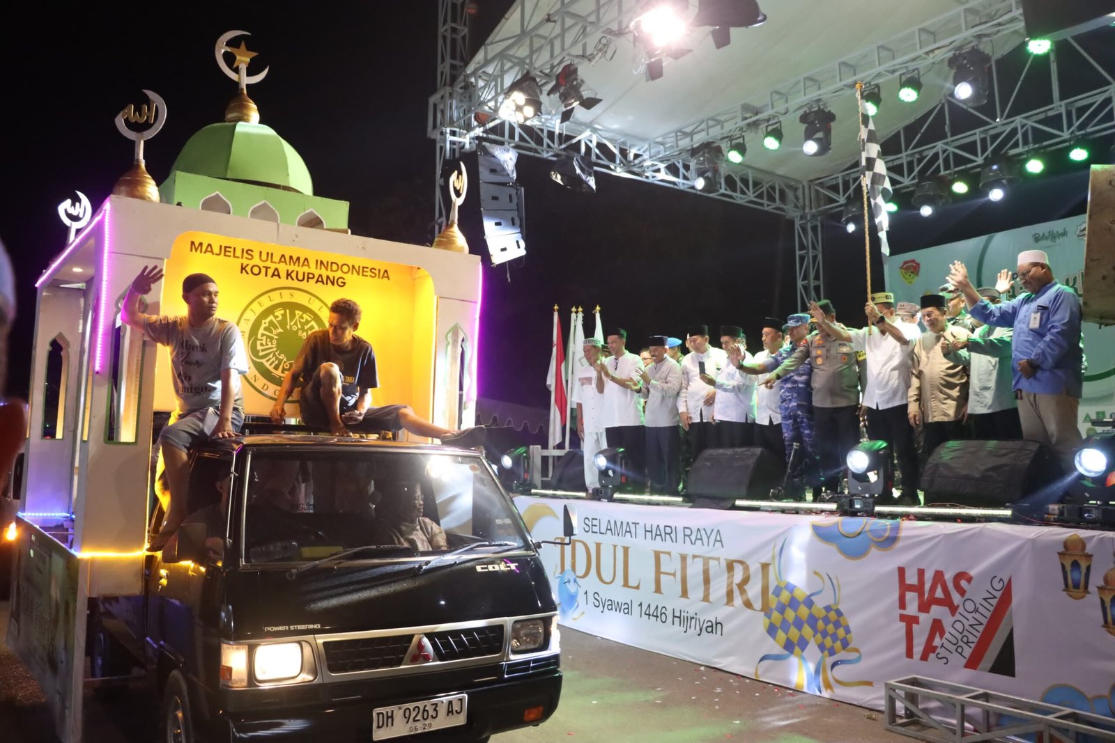 Pawai Kupang Bertakbir diikuti ribuan umat Muslim Kota Kupang dengan kendaraan hias dan lantunan takbir sepanjang rute.