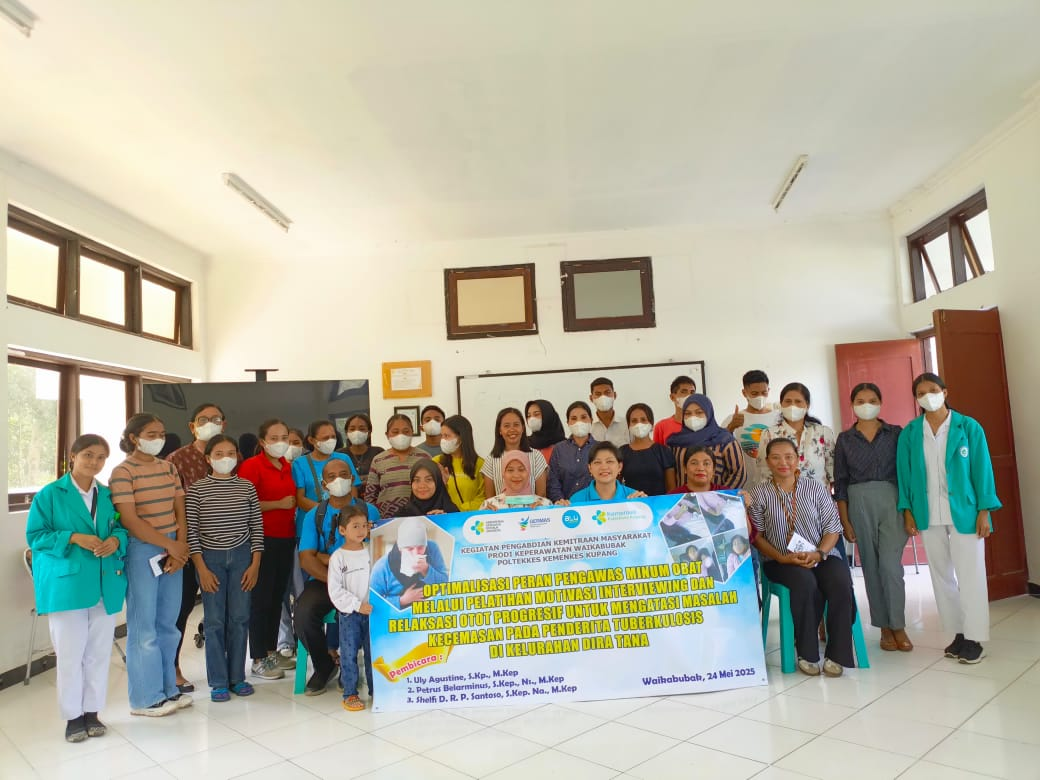 Menanggapi situasi tersebut, tim dosen dan mahasiswa menggelar kegiatan bertajuk “Optimalisasi Peran Pengawas Minum Obat melalui Pelatihan Motivational Interviewing dan Relaksasi Otot Progresif untuk Mengatasi Masalah Kecemasan pada Penderita TB di Kelurahan Dira Tana.” Fokus utama kegiatan ini adalah memberdayakan Pengawas Minum Obat (PMO) sebagai mitra strategis dalam meningkatkan kepatuhan pengobatan.
